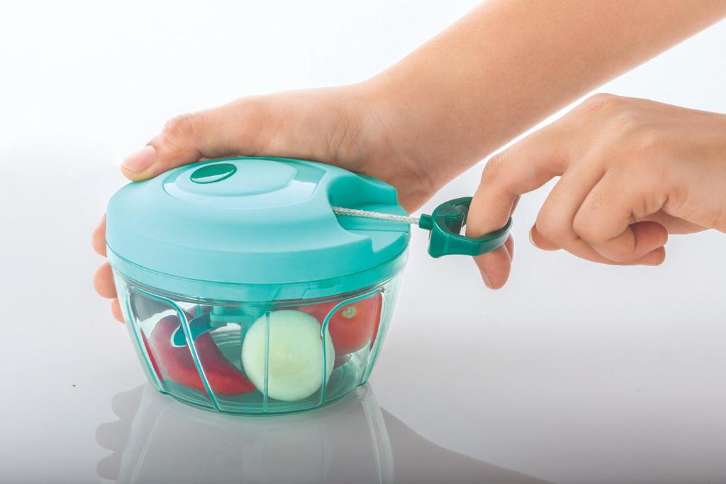 Effortlessly mince, chop, and dice vegetables, herbs, and nuts with precision using this five-blade quick chopper. The multi-blade design ensures uniform cuts in seconds, reducing prep time significantly. Simply pull the handle repeatedly to activate the sharp stainless steel blades that work through your ingredients with minimal effort. Ideal for busy kitchens, this tool delivers consistent results whether you're preparing salads, sauces, or garnishes. Durable construction and easy clean-up make it an indispensable addition to your culinary arsenal.